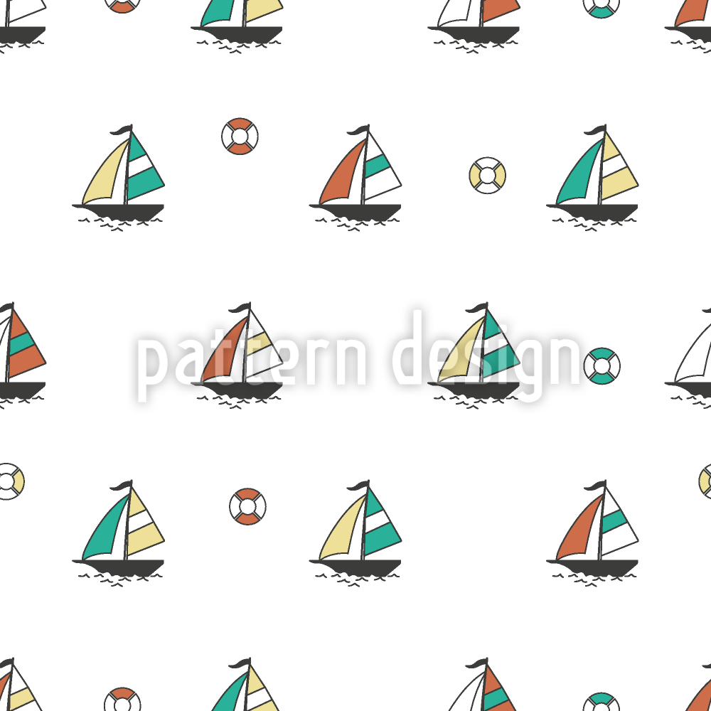 Dalgalar üzerinde yelkenli tekneler Dikişsiz Vektör Desen Tasarımı