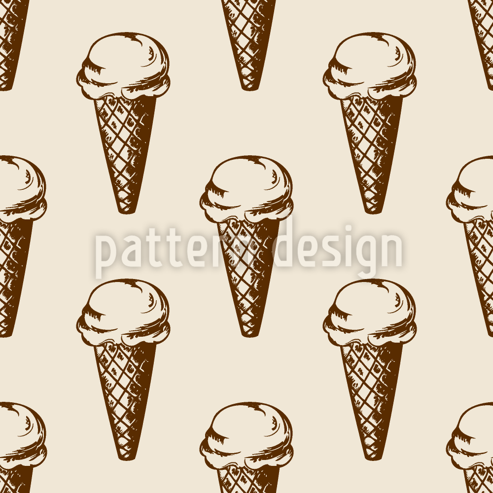 Waffle Külahında Dondurma Dikişsiz Vektör Desen Tasarımı