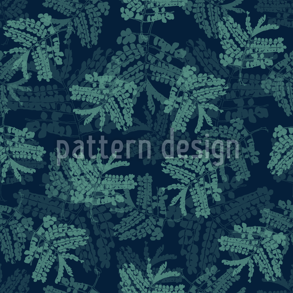 Akasya Yaprakları Mavi Dikişsiz Vektör Desen Tasarımı