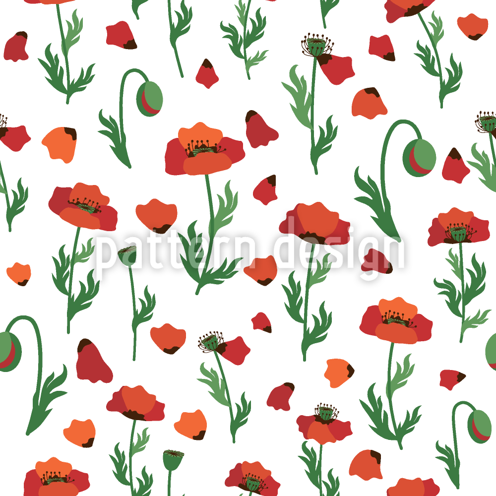 | Açıklama | Parlak kırmızı stilize haşhaş çiçekleri ve haşhaş tomurcukları ile yaz deseni. | ||