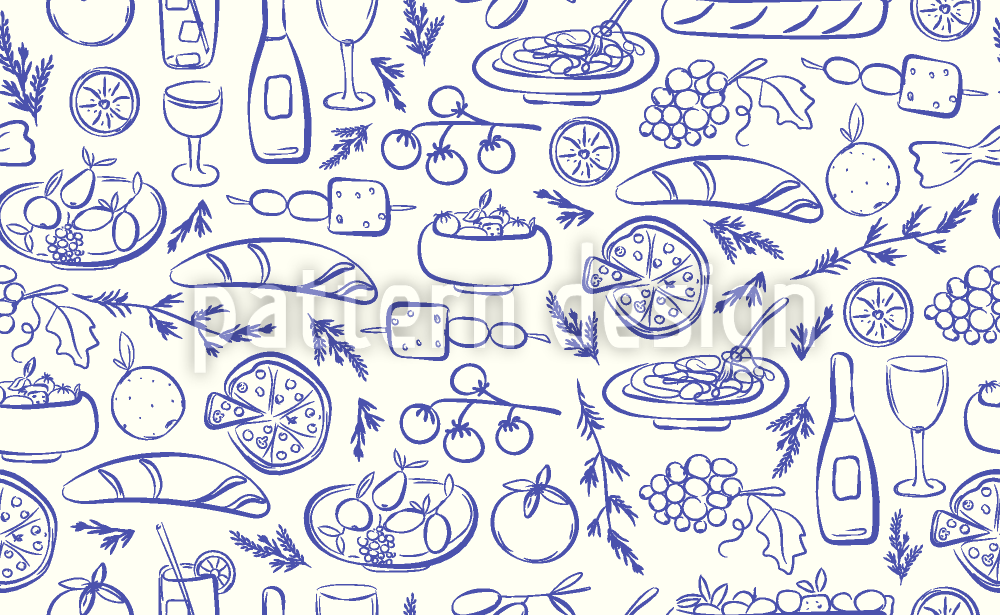 Avrupa mutfağının keyifli bayramı illüstrasyon Dikişsiz Vektör Desen Tasarımı