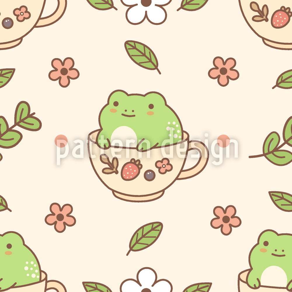 Çay Fincanı Kurbağa Dikişsiz Vektör Desen Tasarımı