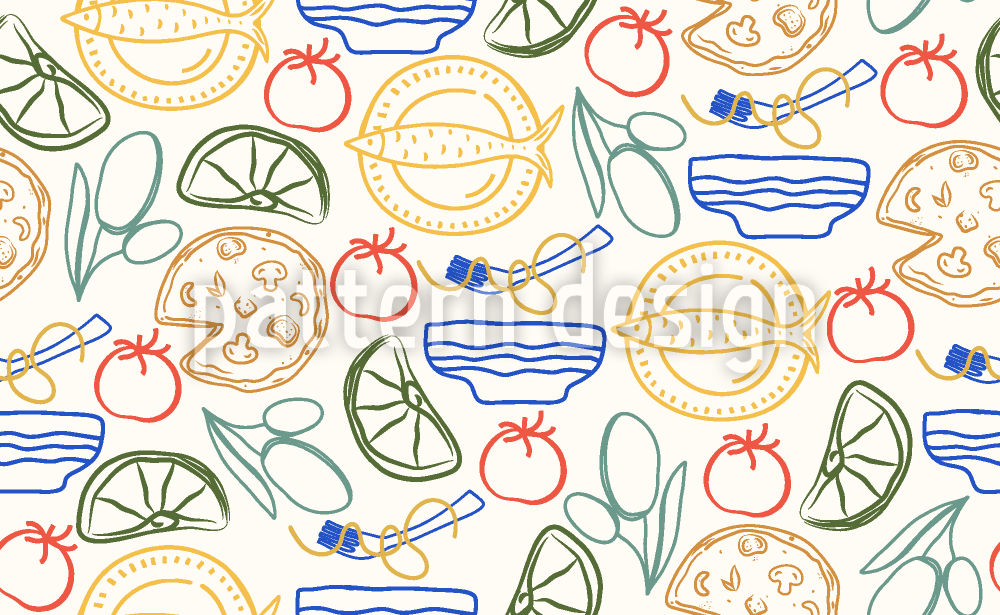 İtalyan Yaz Yemekleri Dikişsiz Vektör Desen Tasarımı