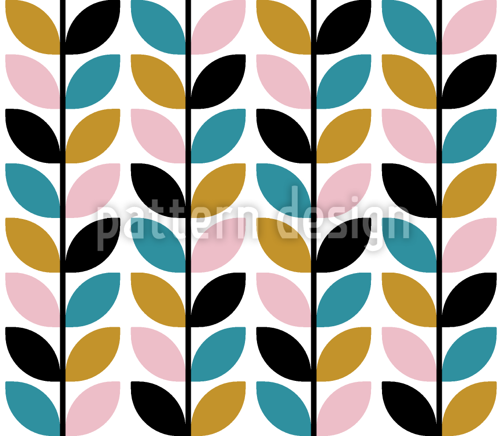 | Açıklama | Dikey sıralarda stilize yapraklara sahip retro desen ve scandi görünümü yaratan sessiz renkler. | ||