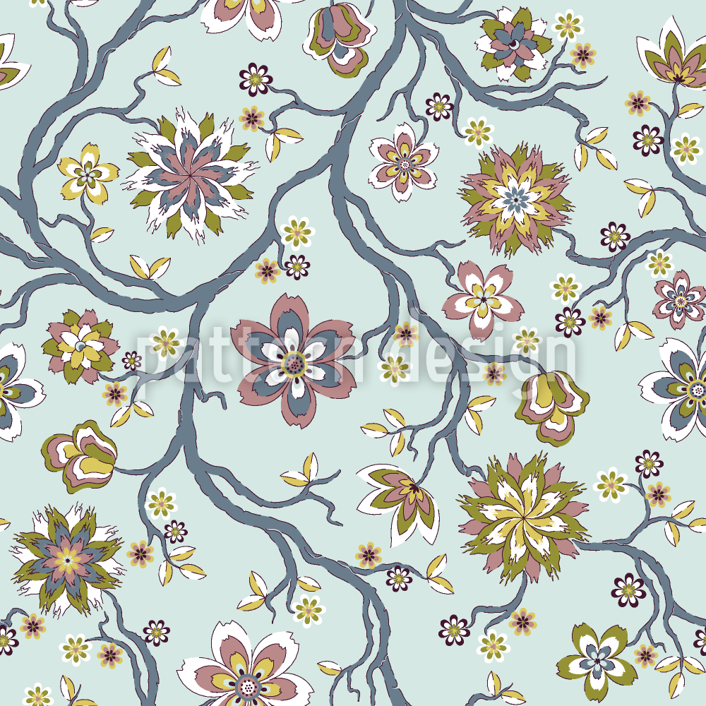 Fantastik Çiçek Açan Dallar Dikişsiz Vektör Desen Tasarımı