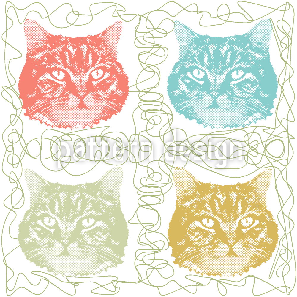 Kitty Minka Yün Seviyor Dikişsiz Vektör Desen Tasarımı
