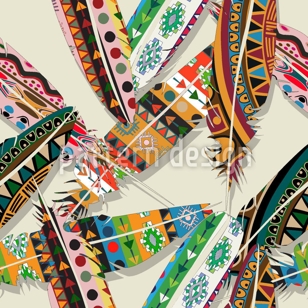 Etno Tüyleri Dikişsiz Vektör Desen Tasarımı