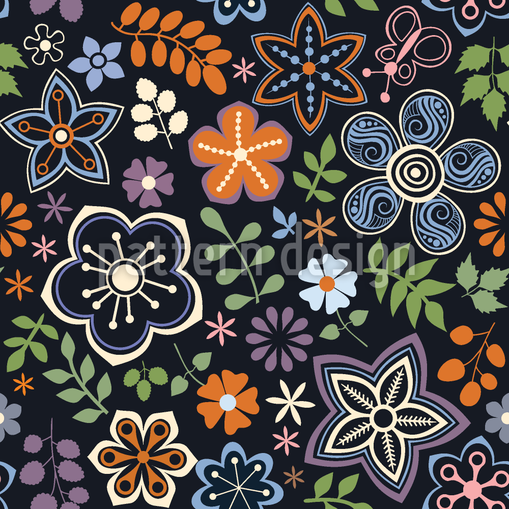 Rus Sihirli Çiçekler Dikişsiz Vektör Desen Tasarımı