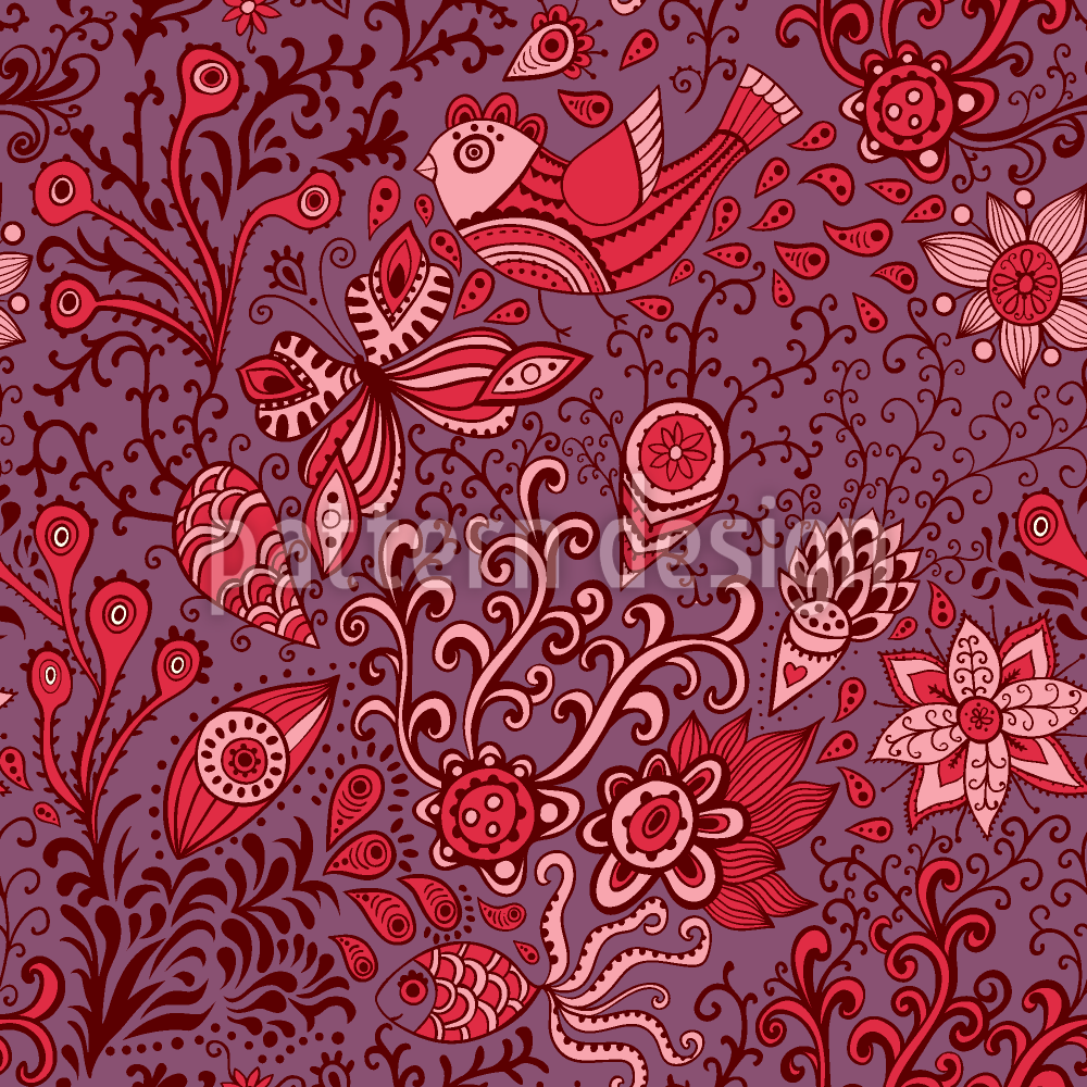 Bülbül Şarkısı Dikişsiz Vektör Desen Tasarımı