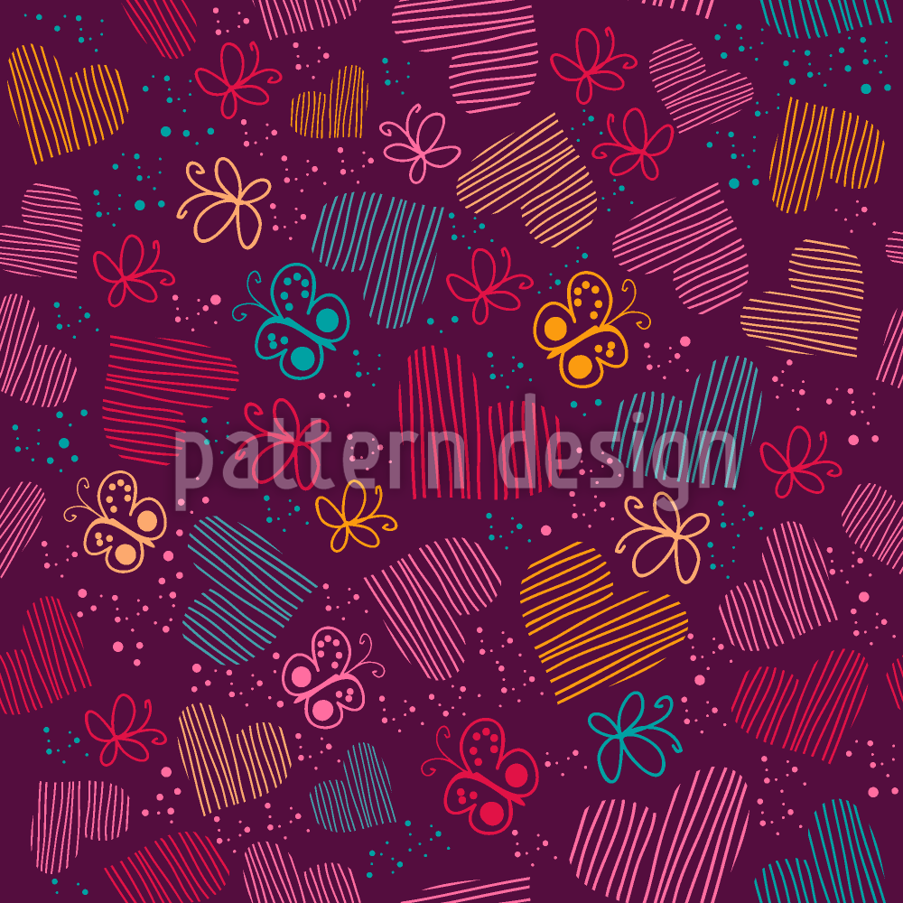Kelebekler Ve Kalpler Evreni Dikişsiz Vektör Desen Tasarımı