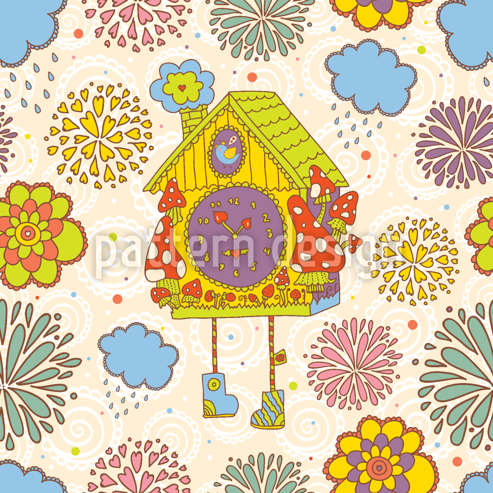 Guguk Kuşu Saat Dikişsiz Vektör Desen Tasarımı