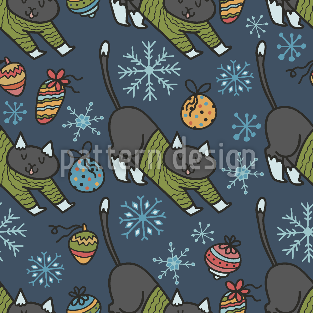 Kazak Noel Kedileri Dikişsiz Vektör Desen Tasarımı