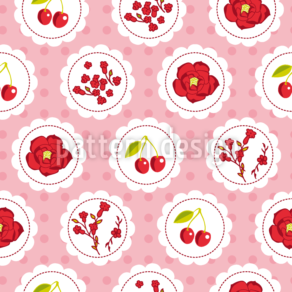 奶奶樱桃花园粉红 无缝矢量模式设计