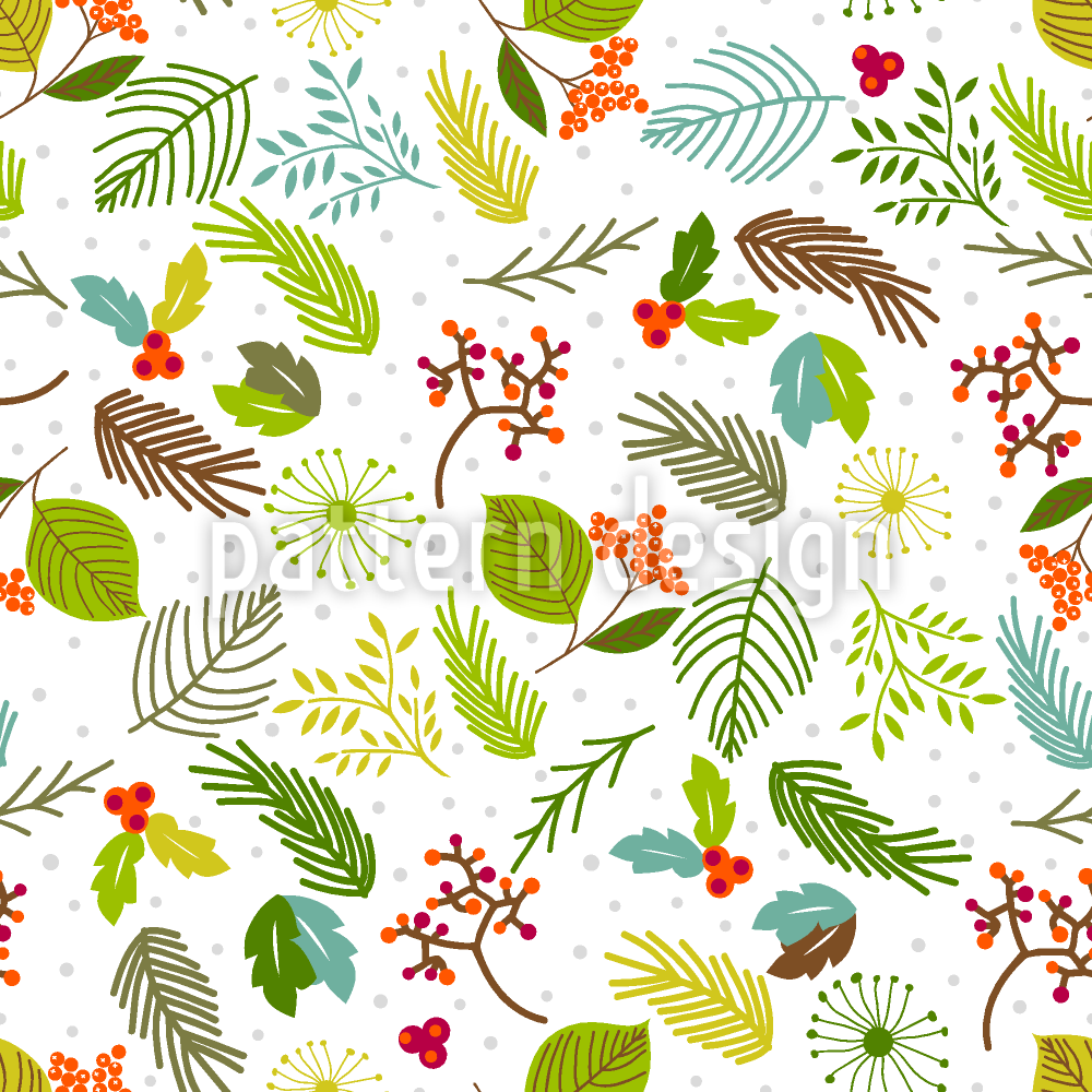 叶子和浆果枝 无缝矢量模式设计