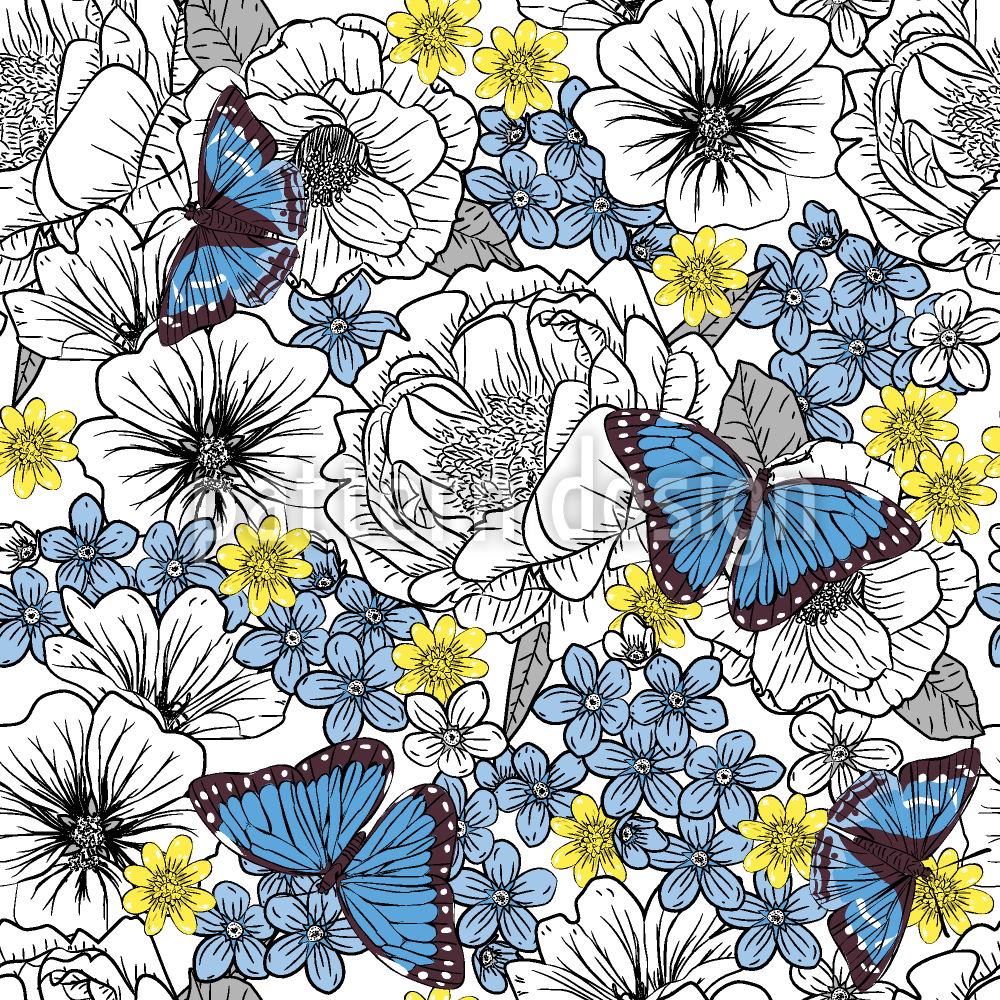 草绘花卉与蝴蝶 无缝矢量模式设计