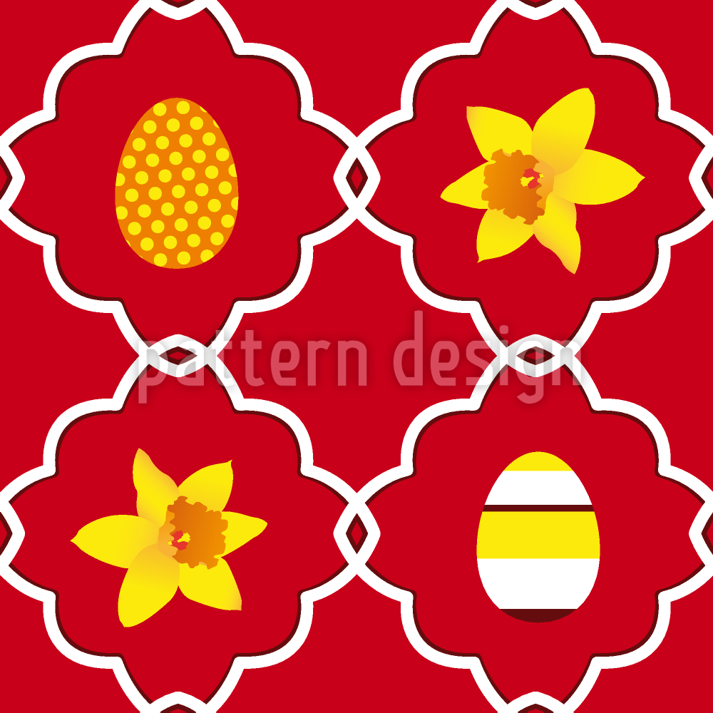 复活节水仙红 无缝矢量模式设计