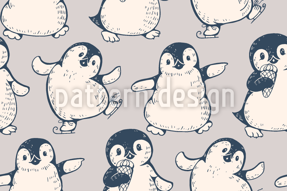 企鹅爱冰淇淋 无缝矢量模式设计