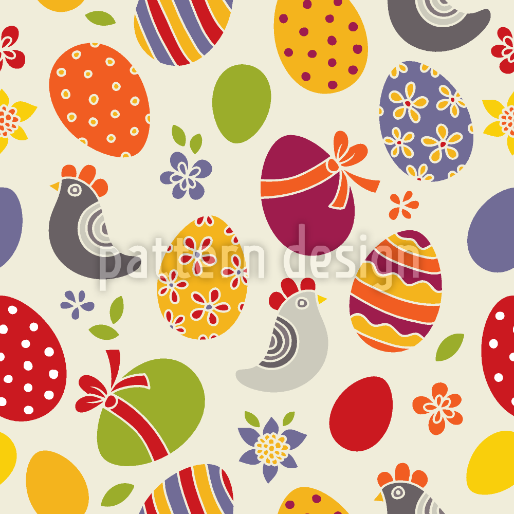复活节彩蛋和鸡 无缝矢量模式设计