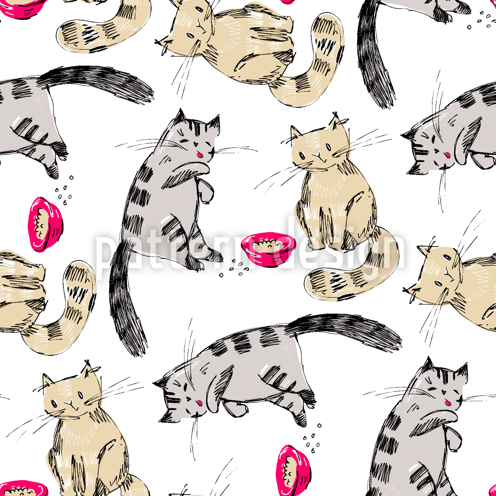 猫与食物 无缝矢量模式设计
