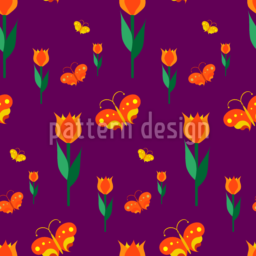 蝴蝶在郁金香的床 无缝矢量模式设计