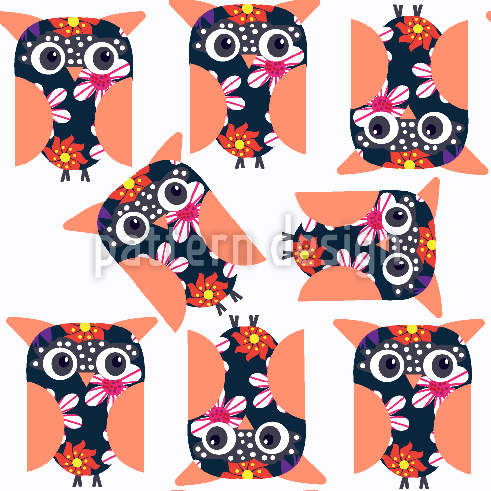 跳舞的猫头鹰 无缝矢量模式设计