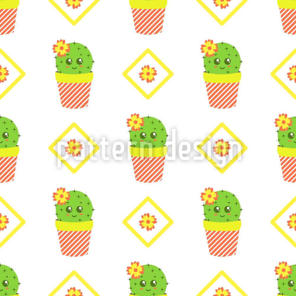 甜仙人掌和鲜花 无缝矢量模式设计
