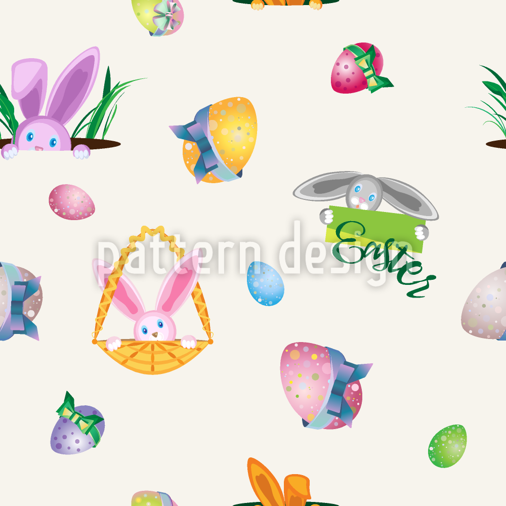 躲藏复活节兔子 无缝矢量模式设计