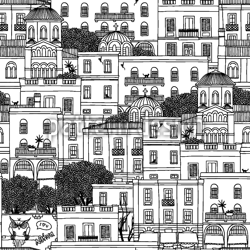 雅典的房屋 无缝矢量模式设计