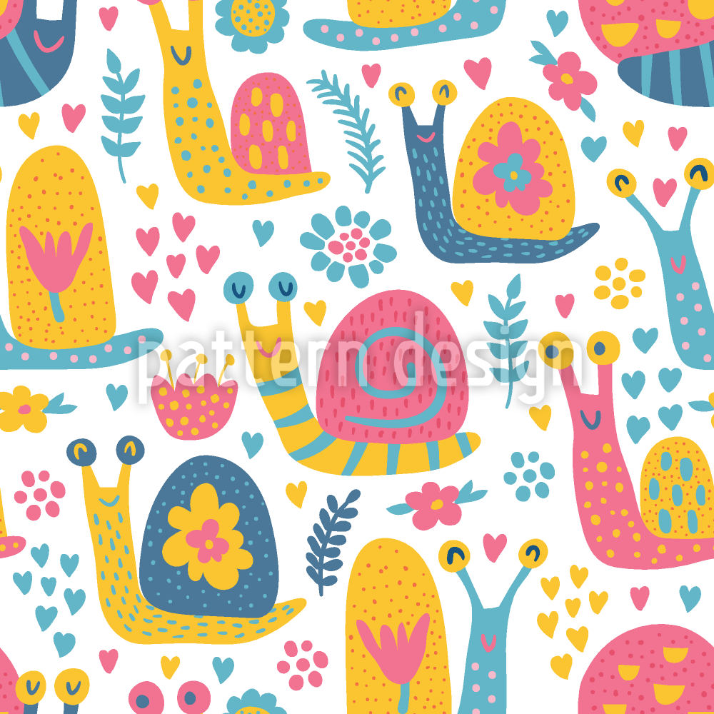 可爱的蜗牛伙伴 无缝矢量模式设计