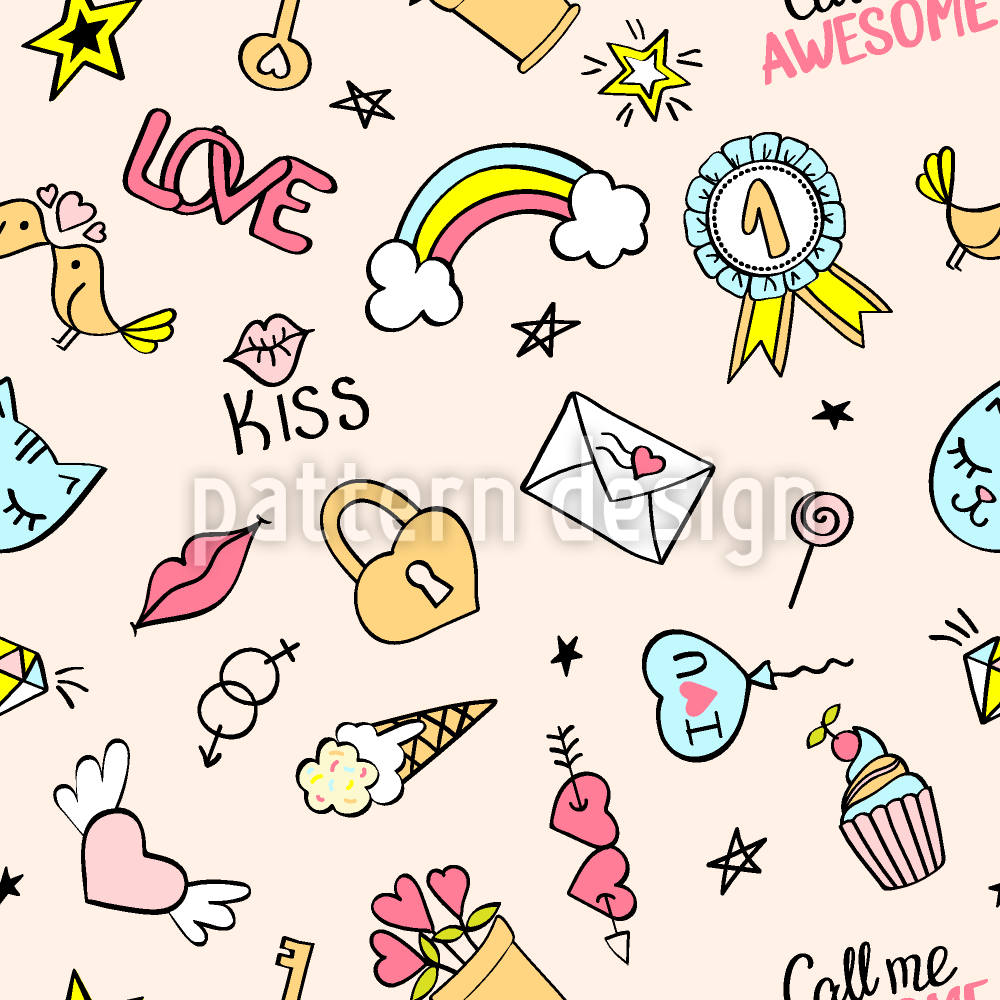 少女涂鸦 无缝矢量模式设计
