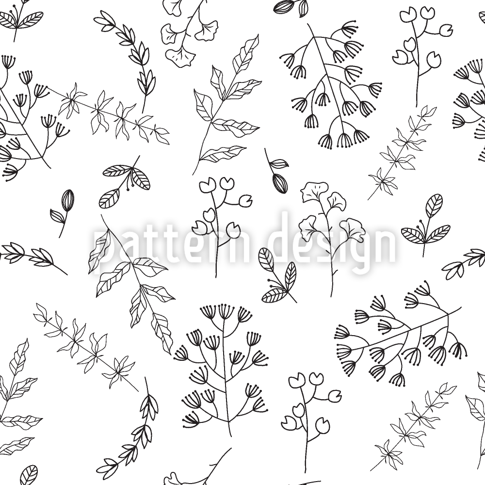 单色树枝布置 无缝矢量模式设计