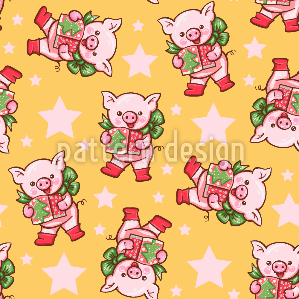 圣诞礼物为小猪 无缝矢量模式设计