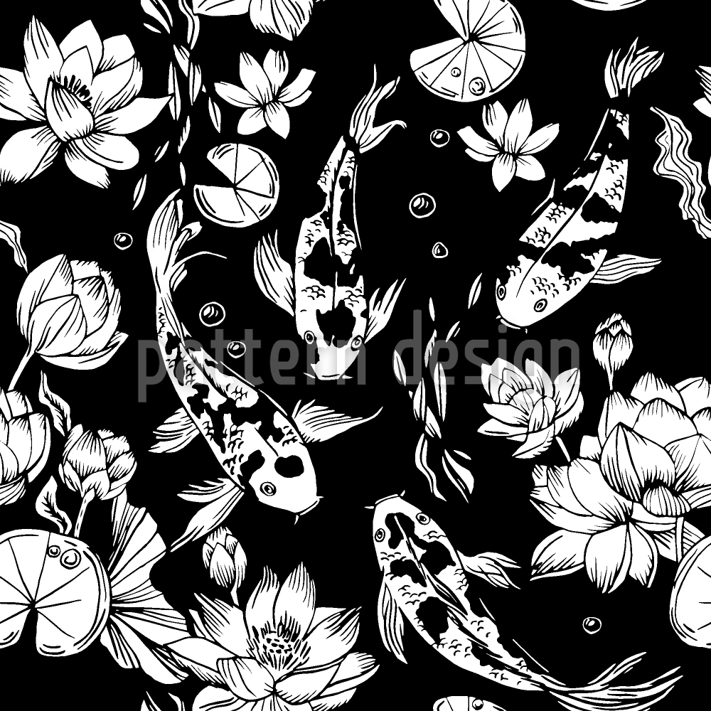 锦鲤鲤鱼和水百合 无缝矢量模式设计