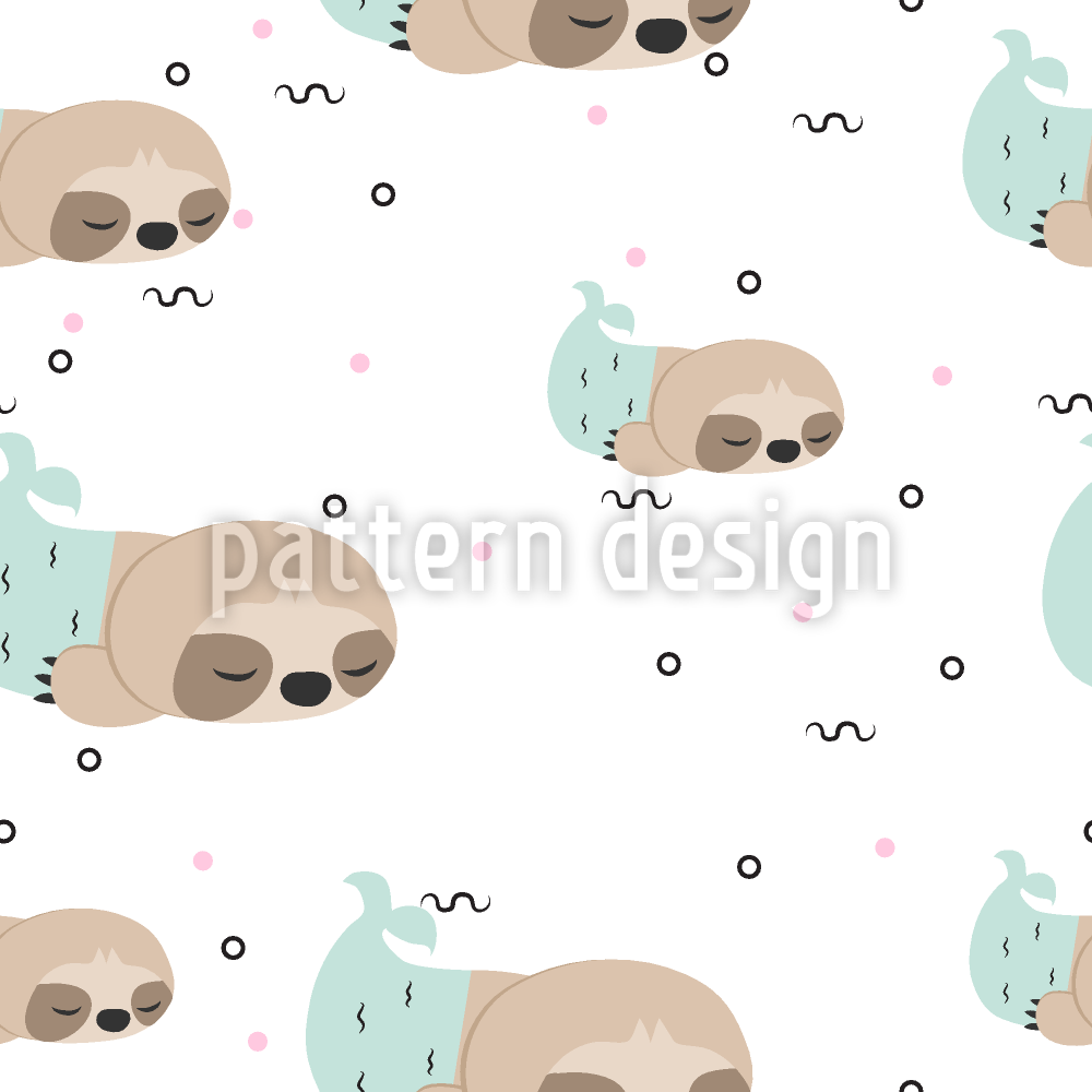 可爱的懒惰美人鱼 无缝矢量模式设计