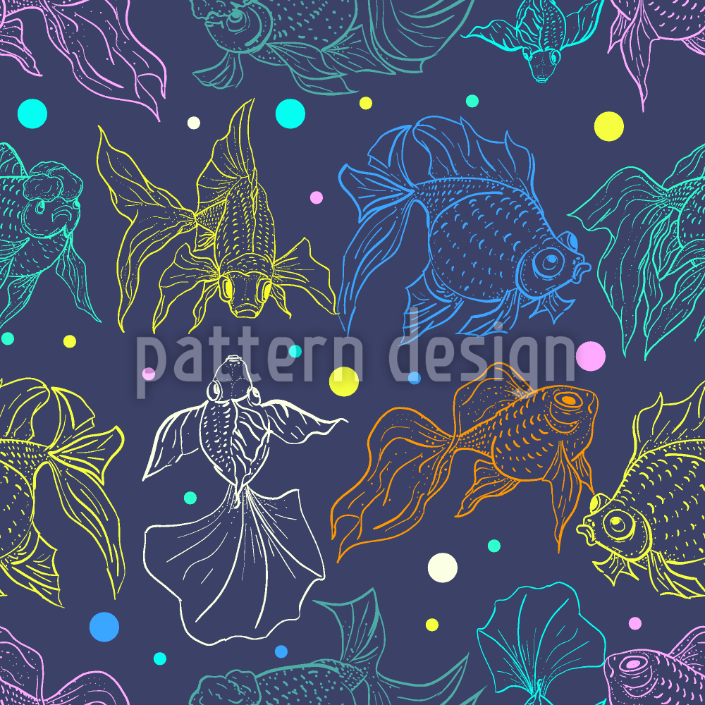 霓虹金鱼 无缝矢量模式设计
