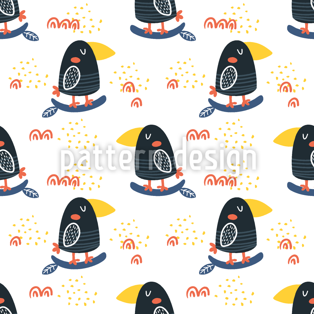 有趣的巨嘴鸟 无缝矢量模式设计