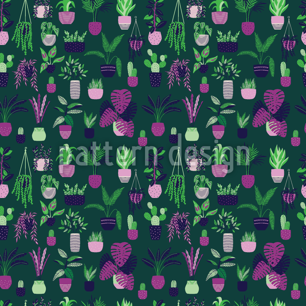 盆栽室内植物 无缝矢量模式设计