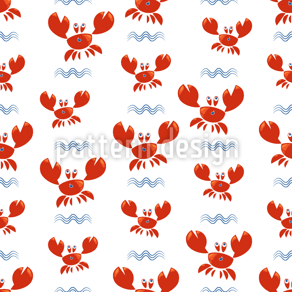 有趣的螃蟹和波浪 无缝矢量模式设计