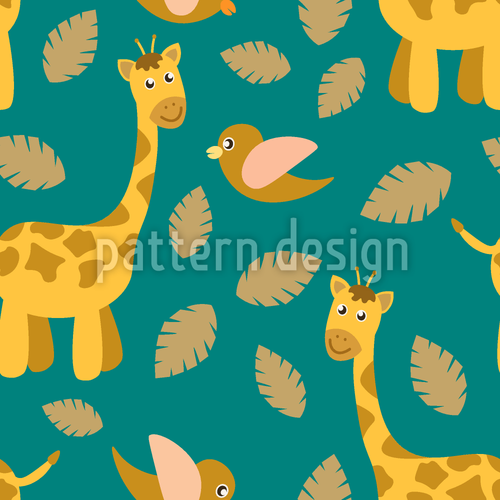 长颈鹿和鸟 无缝矢量模式设计