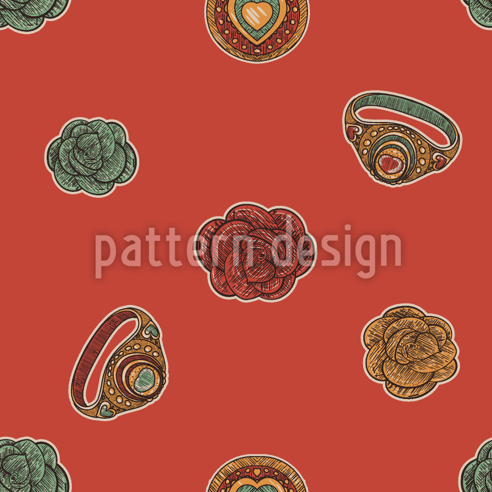 神秘的玫瑰和心形戒指 无缝矢量模式设计