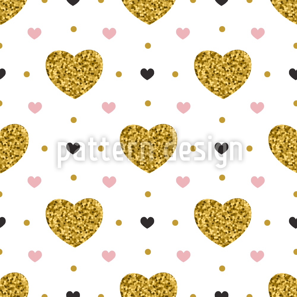 金色浪漫之心 无缝矢量模式设计