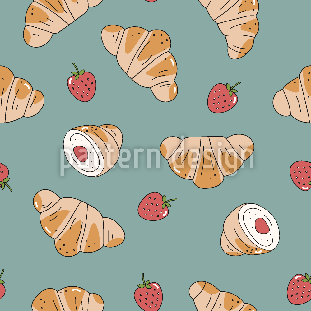 羊角面包和草莓 无缝矢量模式设计
