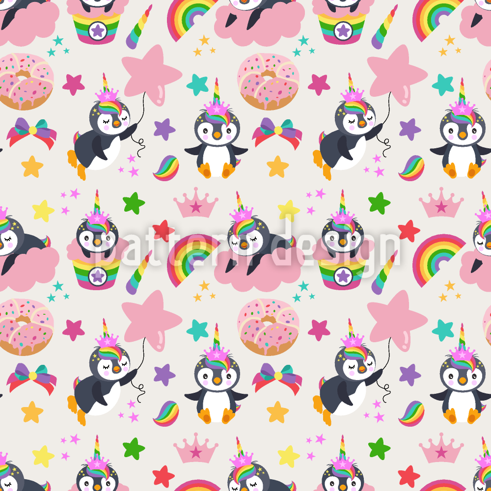 搞笑独角兽企鹅派对 无缝矢量模式设计