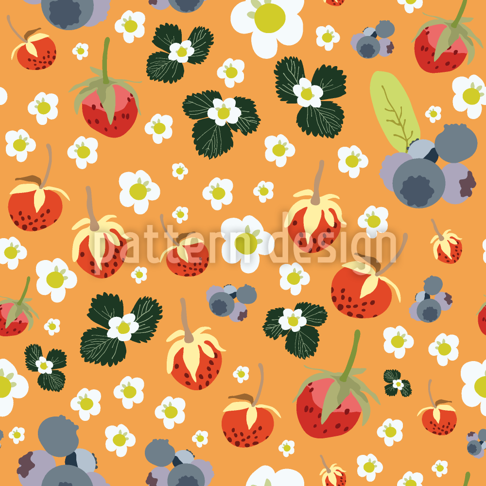 浆果和鲜花 无缝矢量模式设计