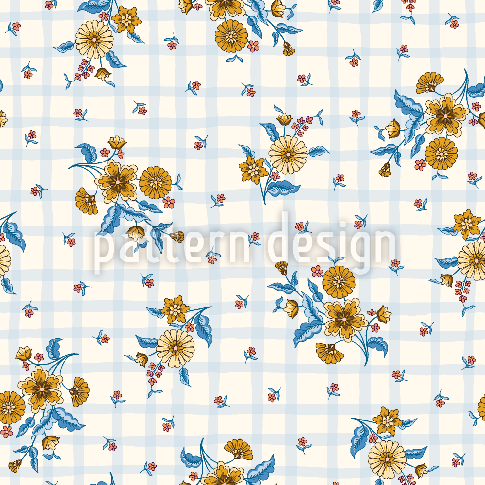 格子布上的花束 无缝矢量模式设计