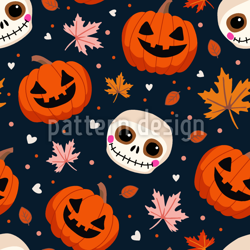 | 描述 | 图案是微笑的南瓜和头骨,周围环绕着秋天的树叶。 | ||