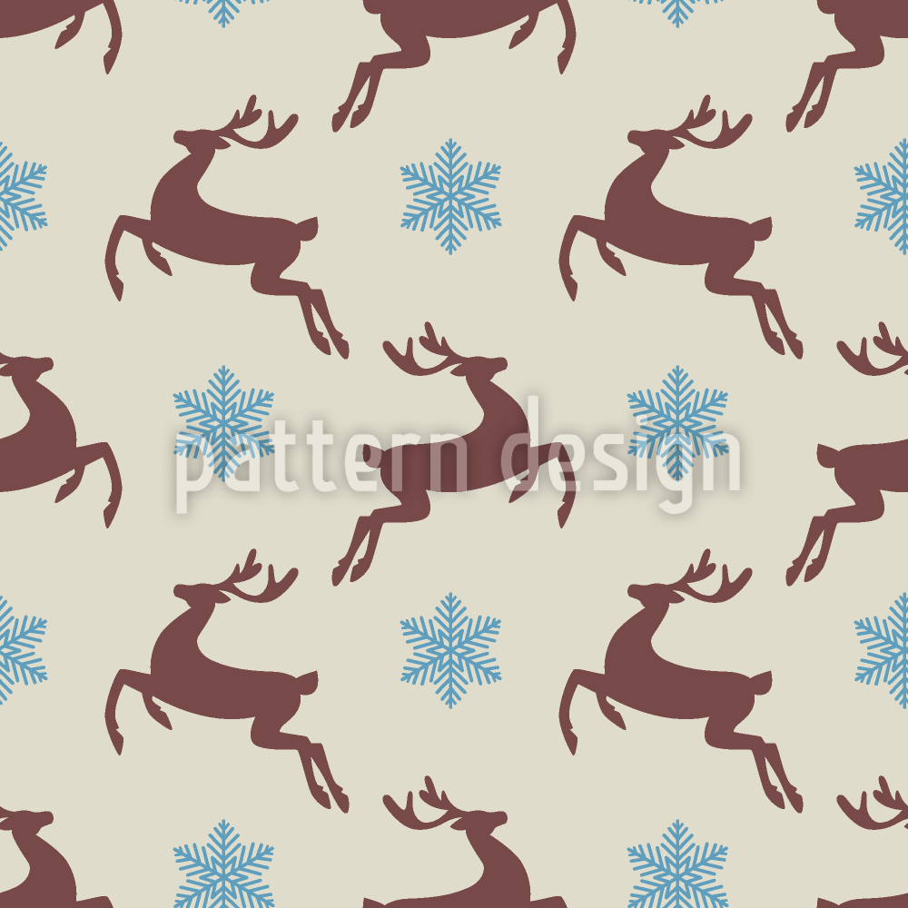 鹿和雪花 无缝矢量模式设计