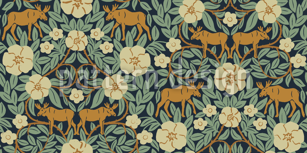 | 描述 | 神秘的花园图案,花藤之间有驼鹿,灵感来自中世纪的艺术风格。 | ||