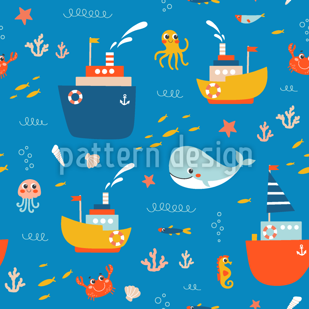| 描述 | 彩色卡通海洋图案,上面有船只和各种海洋生物和植物。 | ||