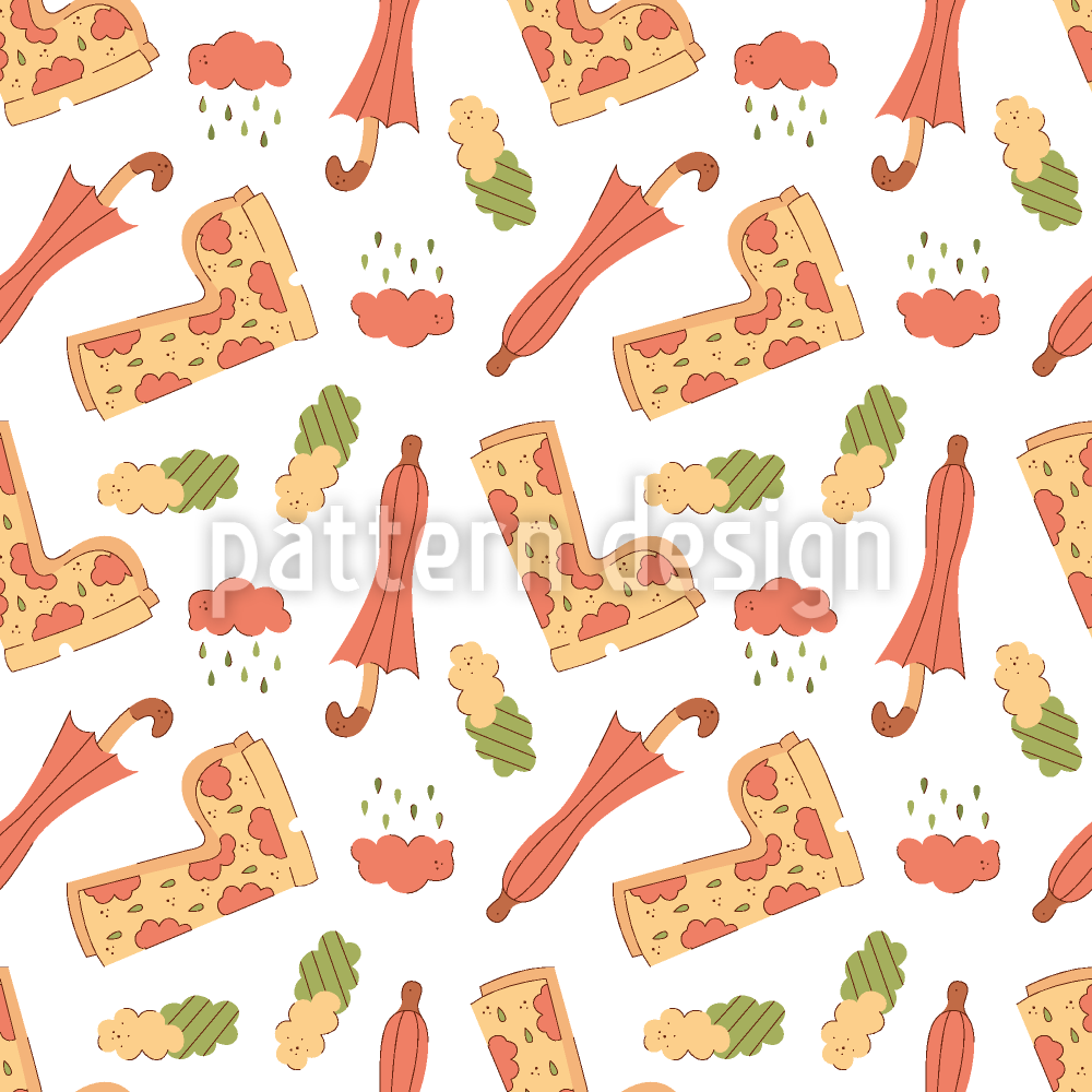 | 描述 | 带有风格化雨云、橡胶靴和雨伞的雨季图案。 | ||